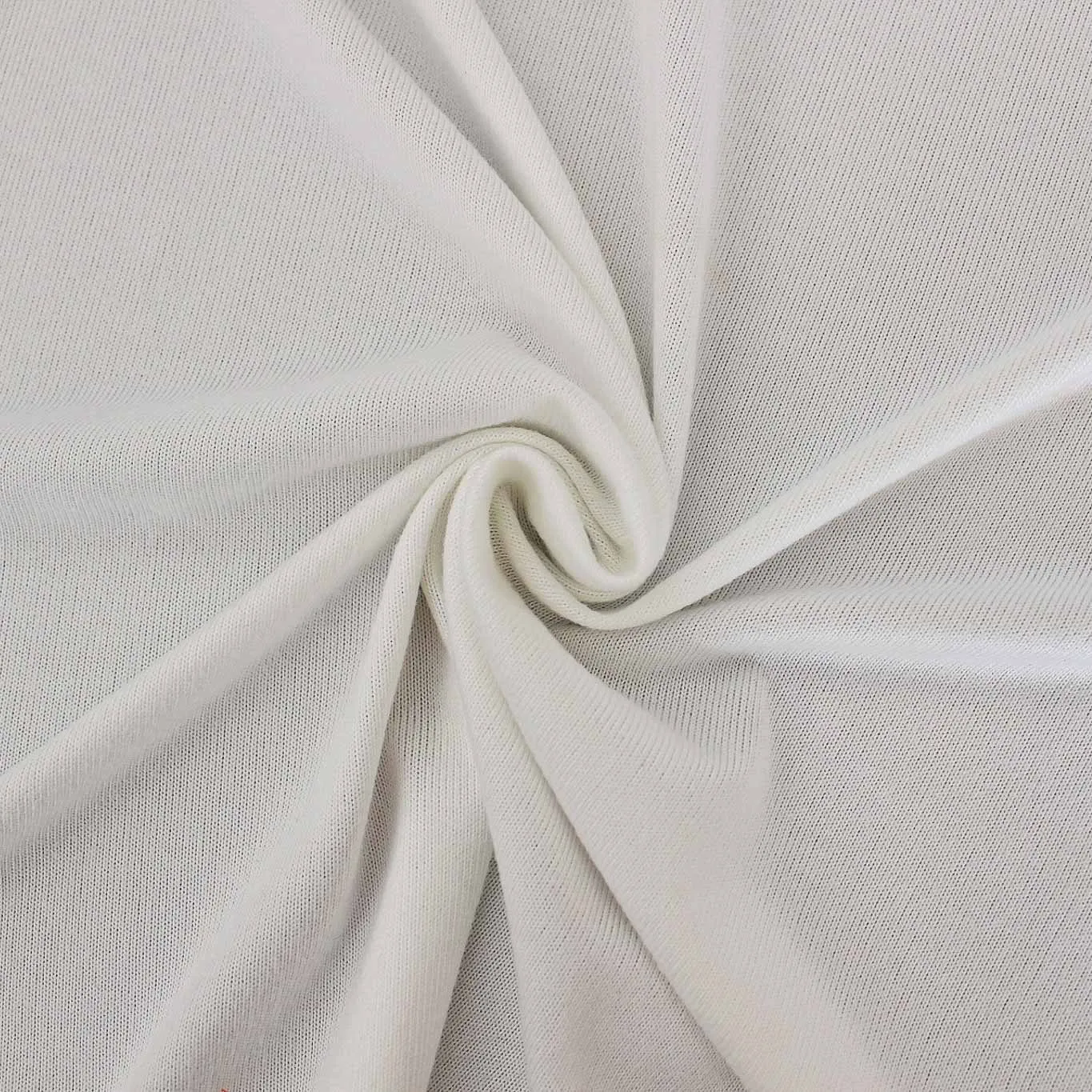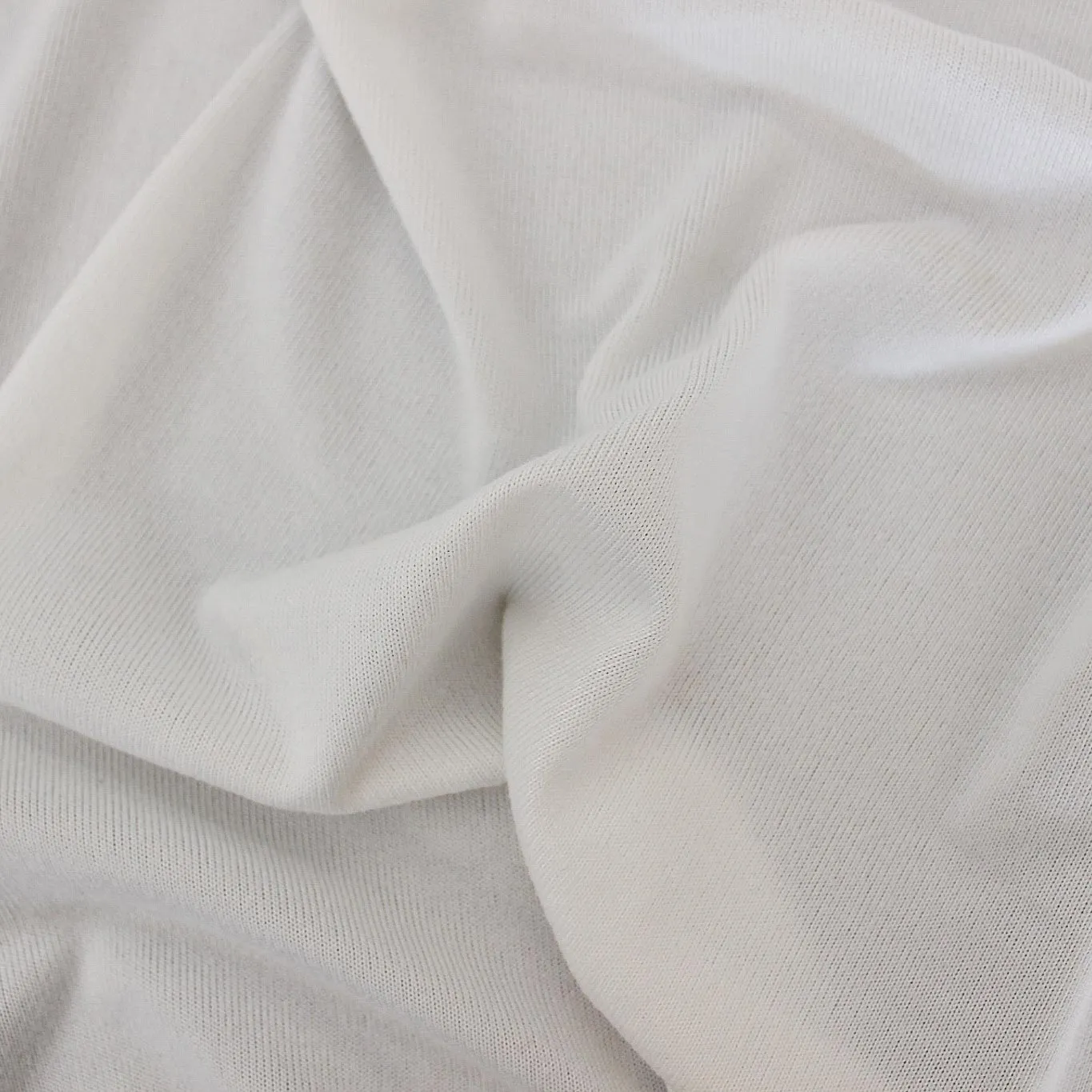 Morbido tessuto elasticizzato in maglia di colore bianco. Tessuto dalla mano soffice con un supeficie opaca e liscia , ideale per creare capi d'abbigliamento donna e bambina come maglie, abiti, top.