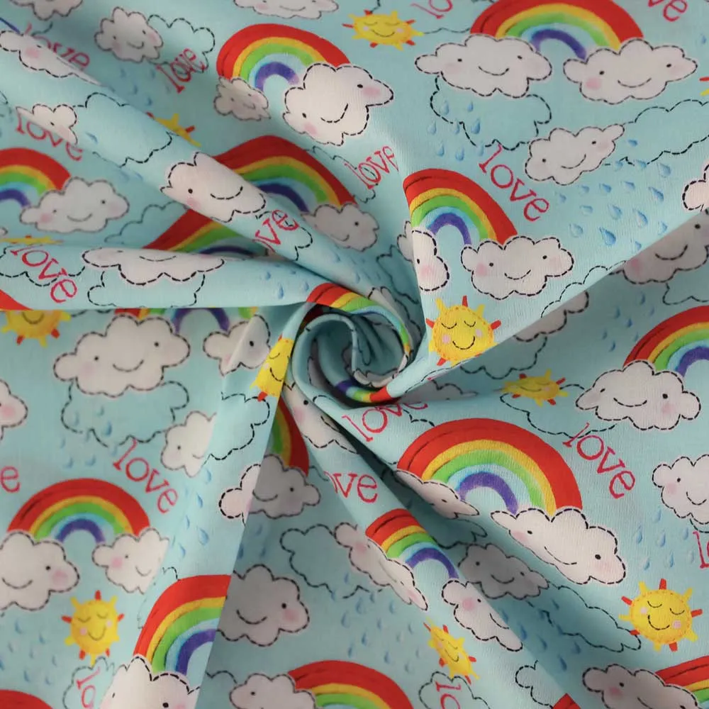 COTONE FANTASIA NUVOLE E ARCOBALENI - CELESTE