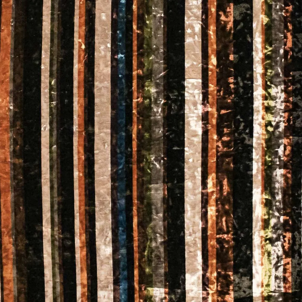 Morbido tessuto in ciniglia effetto martellato bielastico fantasia righe multicolor. Ideale per realizzare gonne, abiti o maglie per rendere il tuo outifit invernale cool.