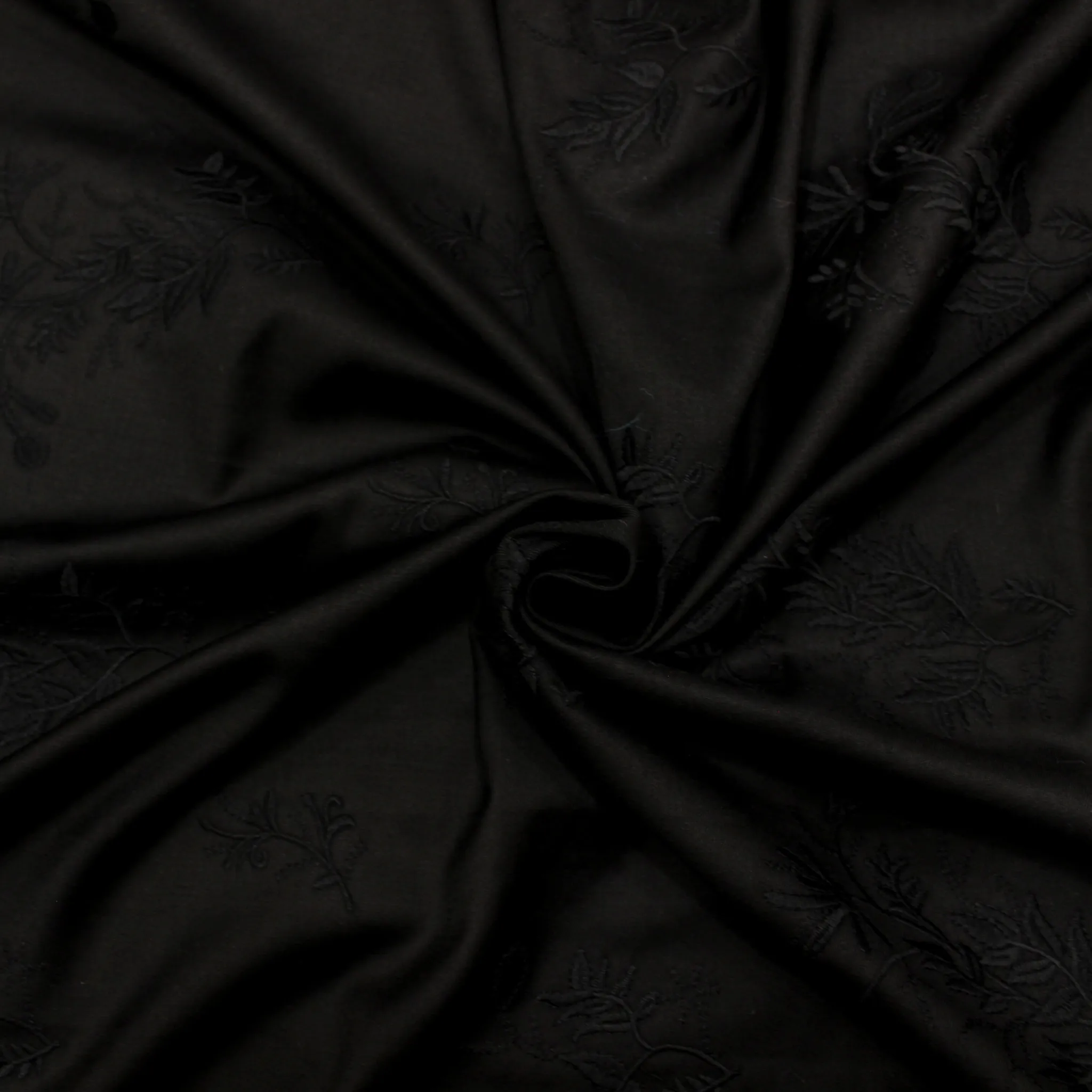 TESSUTO POLIVISCOSA RICAMATO - NERO