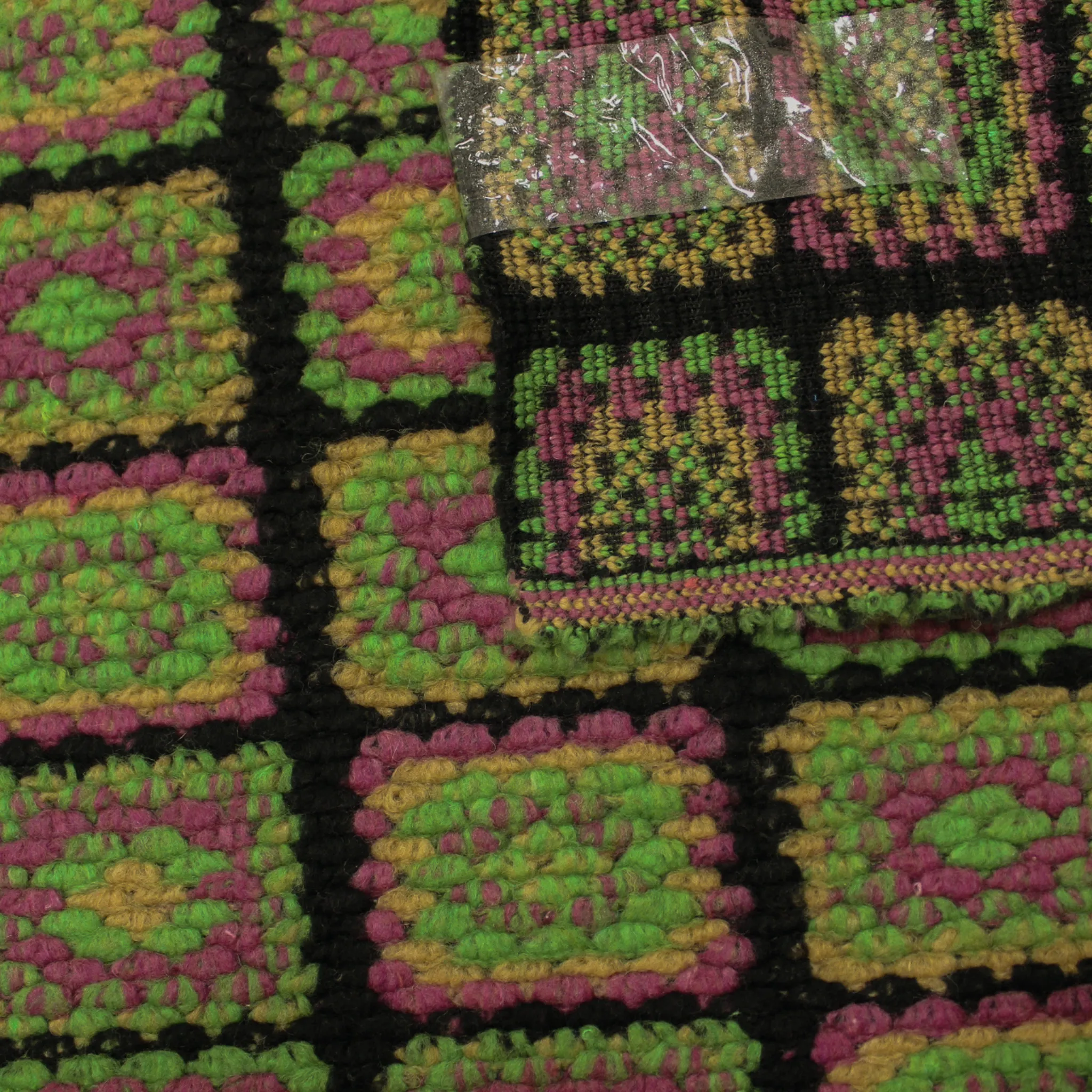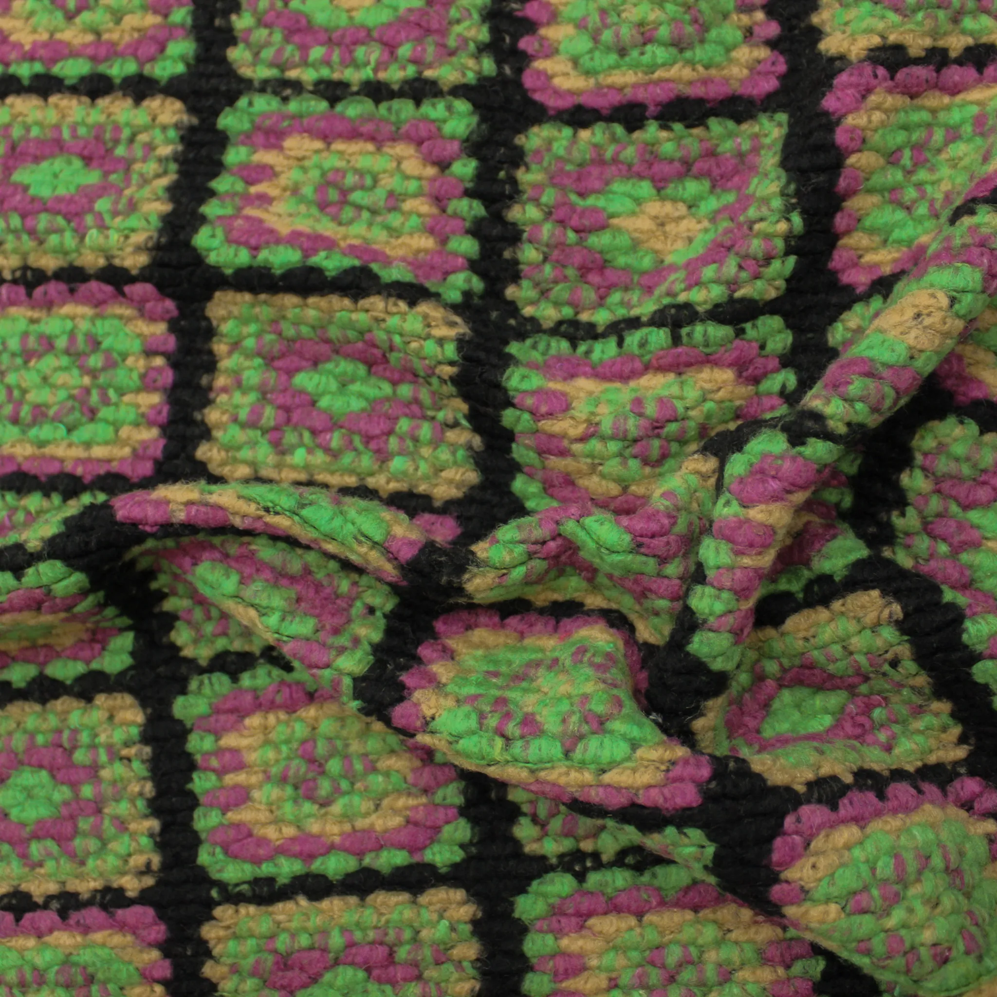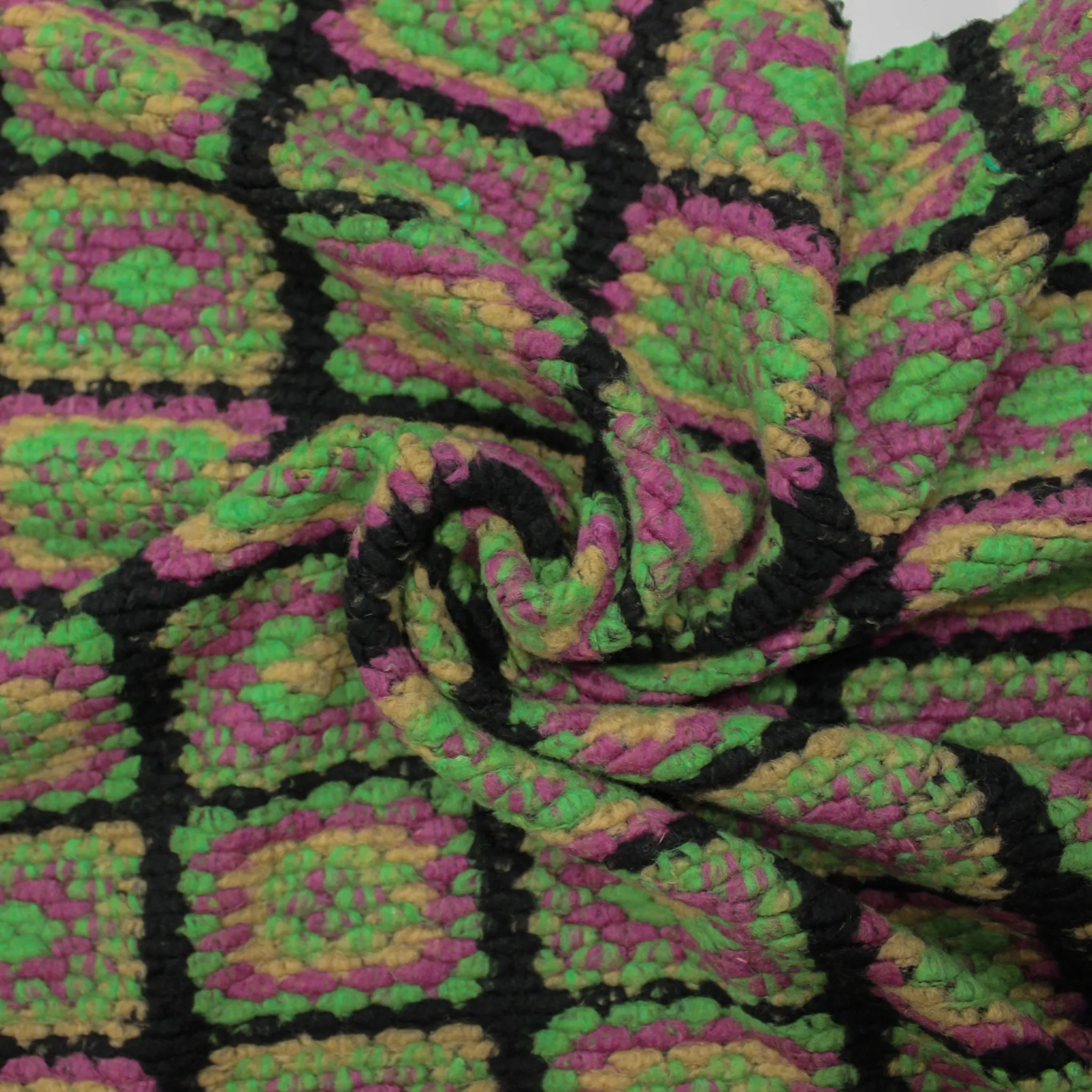 TESSUTO PER CAPPOTTO QUADRI MISTO LANA EFFETTO UNCINETTO - FUCSIA/ VERDE