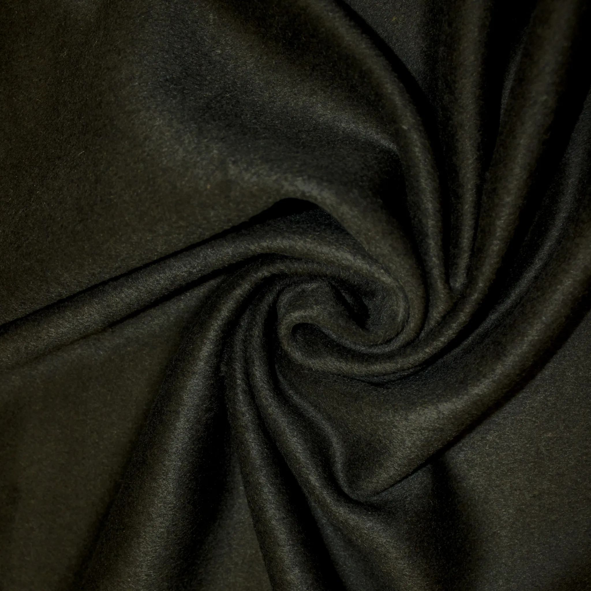 Caldo e morbido tessuto di panno battuto per cappotto di colore verde militare scuro in tinta unita . Compatto e liscio dal peso medio ideale per autunno - inverno , unisex e super versatile . Ha una superficie opaca . Ideale per realizzare capi d'abbigliamento come cappotti ,giacche o capispalla.