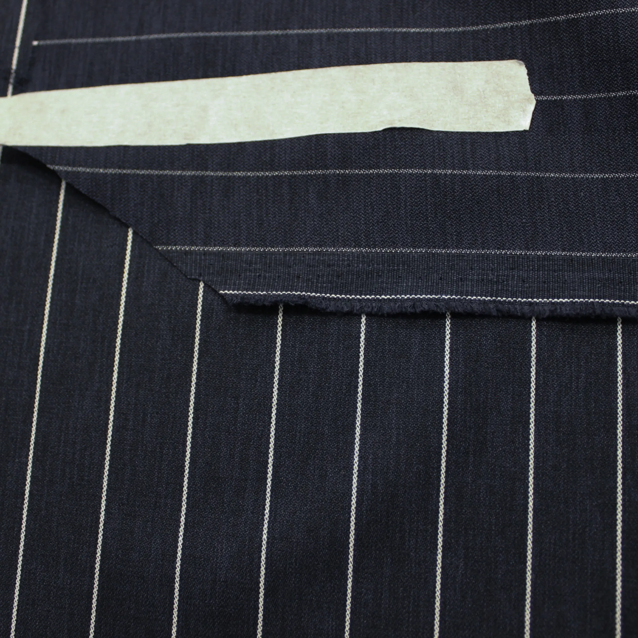 Versatile tessuto gessato in poliviscosa elastica e fresca di colore blu scuro con righe bianche . Leggero e morbido al tatto, con una superficie opaca e liscia , viene utilizzato per creare capi d'abbigliamento primavera- estate donna e bambini elegante e casual come completi, pantaloni, top, giacche o abiti e gonne; risulta molto versatile e adatto a tutte le fisicità .Le righe hanno una distanza di circa 2 centimetri l'una dall'altra .