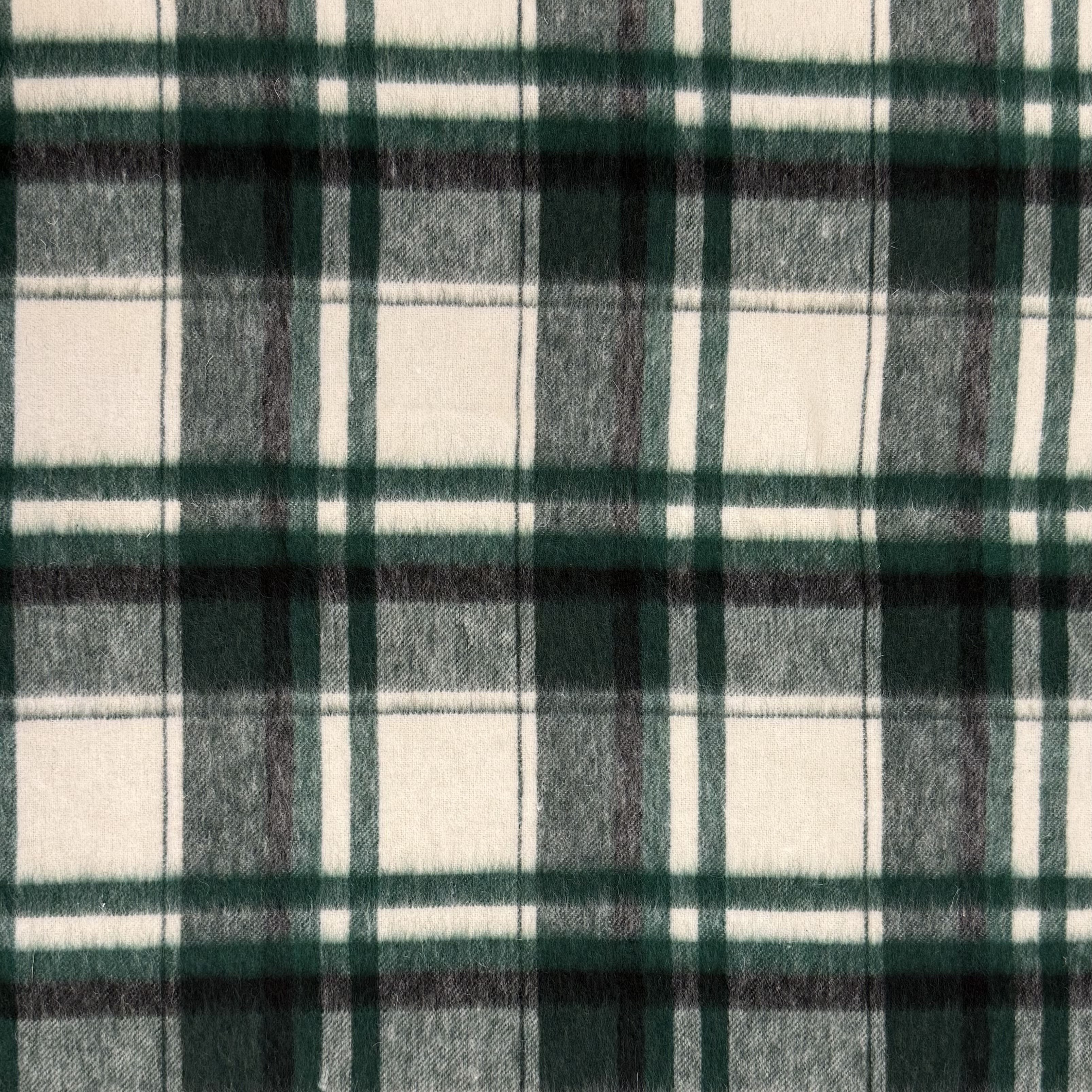 Pregiato tessuto per cappotto in misto lana scozzese Made in Italy deadstock, di colore bianco, verde blu. Questo tessuto è una gemma per gli amanti della sartoria autentica. Proveniente da rimanenze di alta moda, questo tessuto unisce qualità artigianale italiana e design classico scozzese, offrendo un materiale pregiato, sostenibile e dal fascino intramontabile.La composizione in misto lana garantisce calore, resistenza e comfort, mentre il motivo scozzese a quadri dona carattere e stile. Perfetto per cappotti strutturati, giacche invernali, trench e capispalla dal taglio sartoriale.