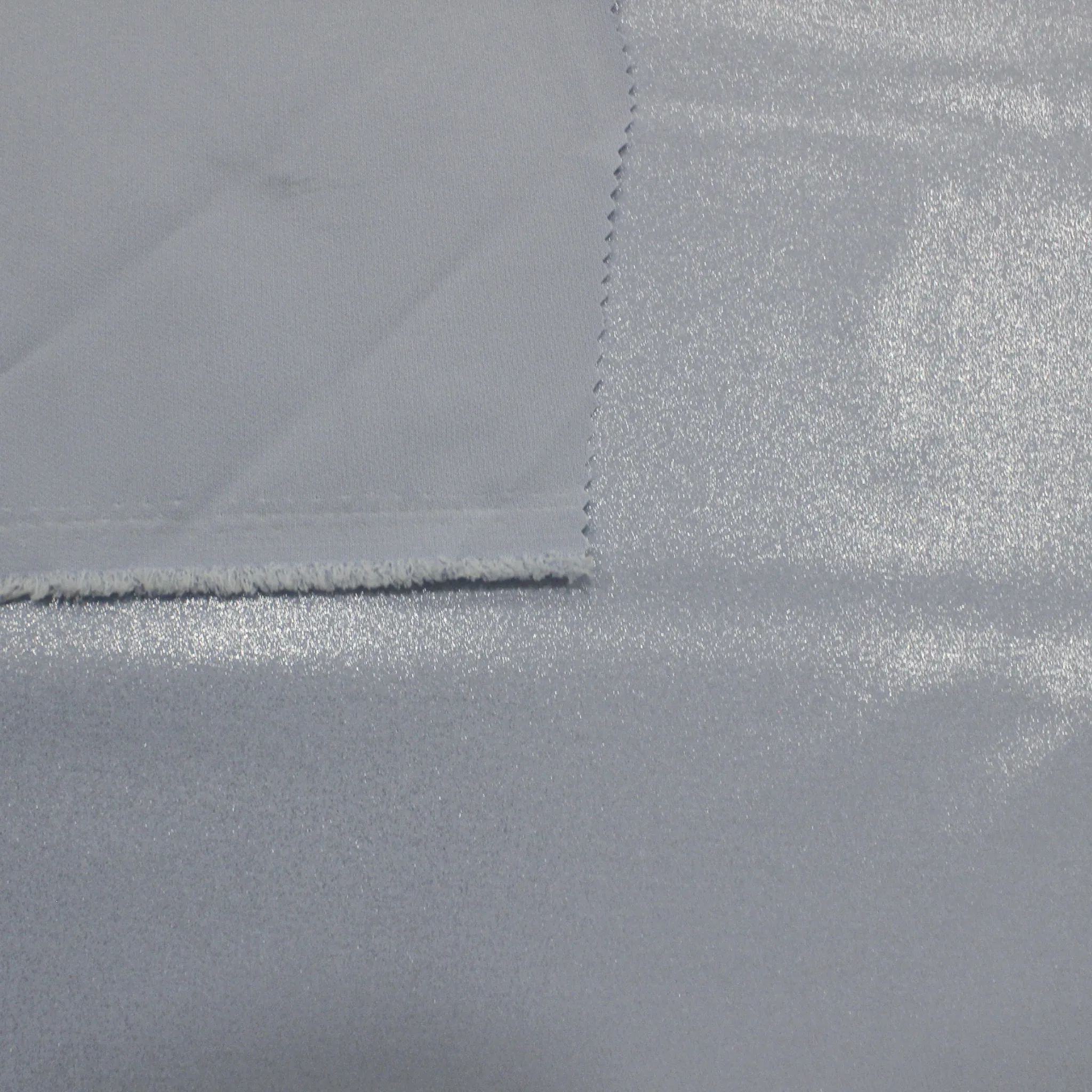 Tessuto in poliviscosa estiva tinta unita di colore celeste con spalmatura argento , si presenta elasticizzato ed è quindi adatto ad ogni fisicità, perfetto per realizzare capi di abbigliamento donna primavera - estate come pantaloni e giacche ,abiti e tanto altro .