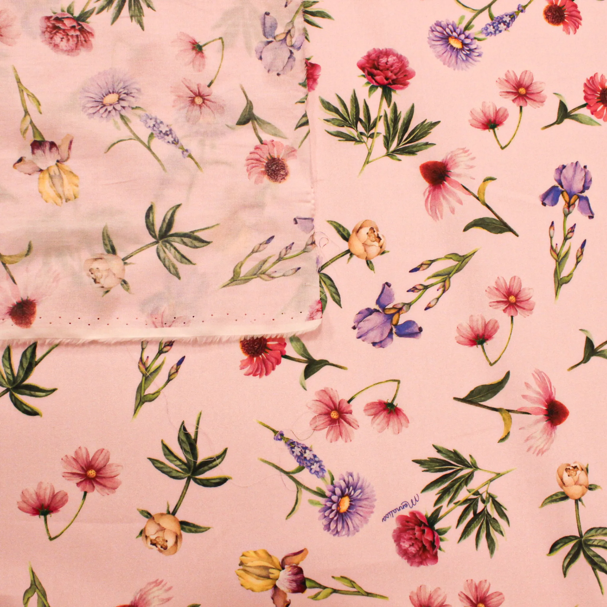 Tessuto in cotone fondo color rosa con motivo floreale multicolor e mini logo Monnalisa in quanto questo è un tessuto deadstock della firma per bambini . E' una stampa MADE IN ITALY i motivi misurano circa 2 centimetri , questo cotone non è fisso e non trasaprente, ha una superficie liscia ed opaca. Ideale per realizzare freschi capi donna e bambini come abiti, camicie , abbigliamento mare ,pantaoni ma anche lenzuola per bambine o tanti proggetti fai da te.