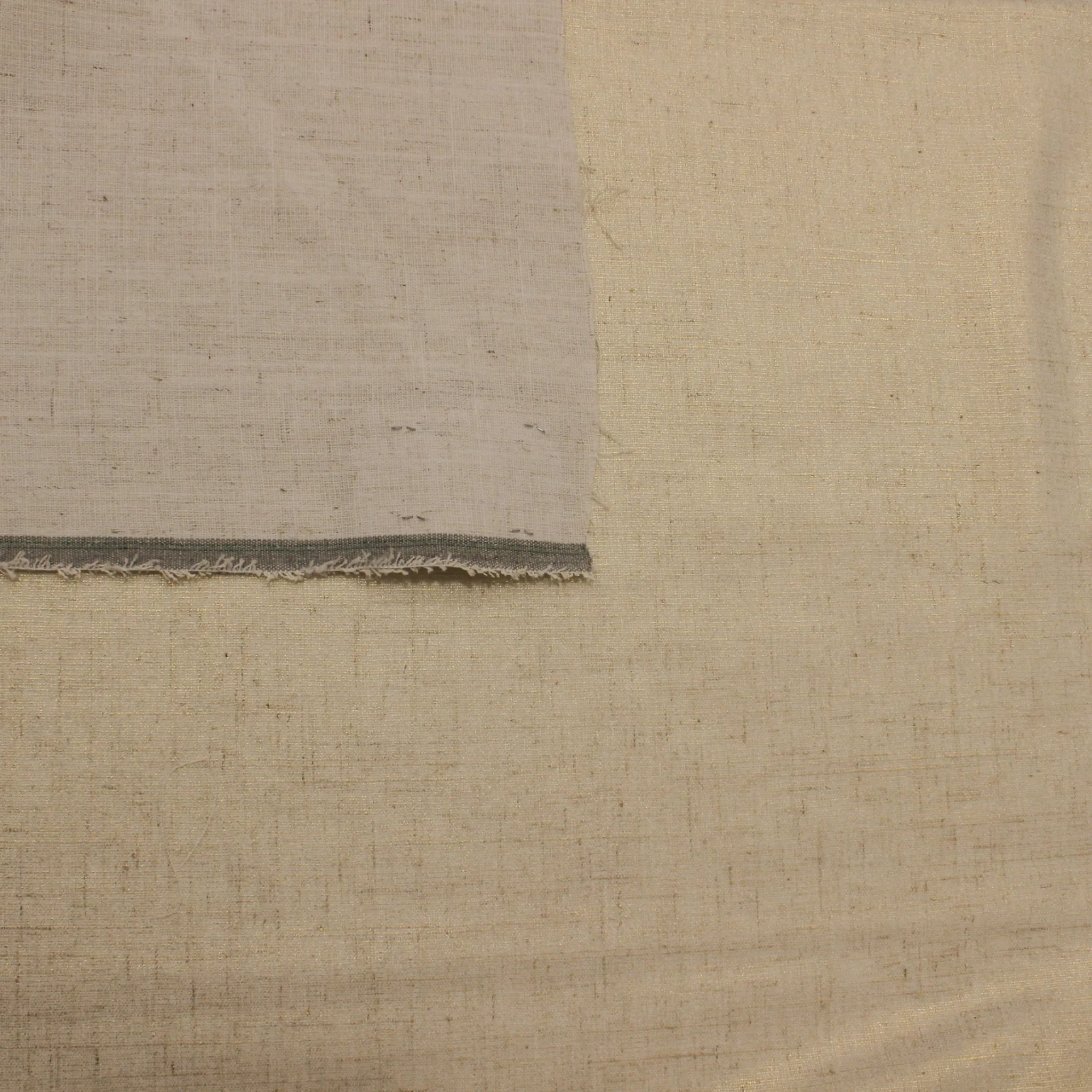 Versatile tessuto in misto lino e viscosa, tinta unita di colore beige con leggera ed uniforme spalmatura oro. Tessuto leggero dalla mano morbida ,superficie liscia e luminosa, risulta non trasparente,ideale per per realizzare capi d'abbiagliamento come completi giacca e pantalone, top,camicie o abiti per donna e bambine. Tessuto adatto per la stagione primavera estate.