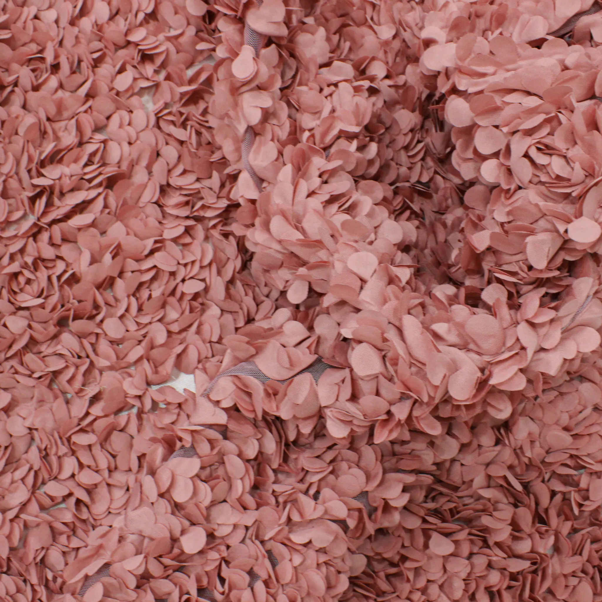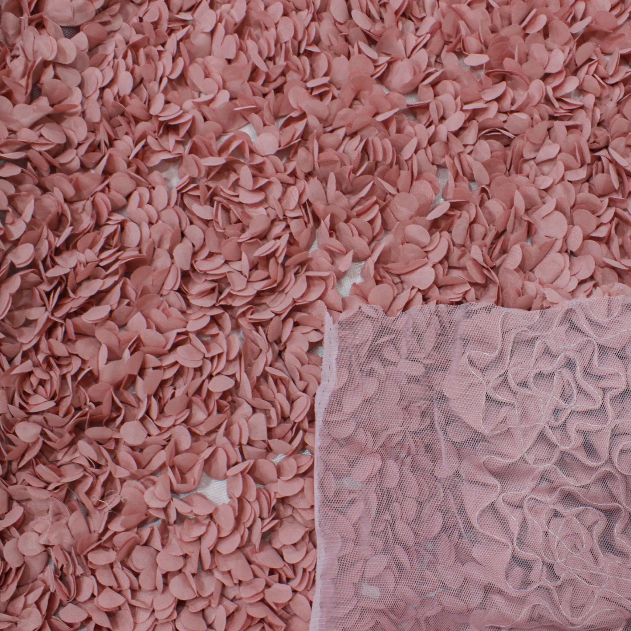 Elegante ed originale tessuto in tulle elasticizzato con petali in rilievo di colore rosa. Perfetto per realizzare particolari capi d'abbigliamento estivi donna o bambina come abiti, gonne,top o accessori moda . Si presenta soffice e vaporoso, morido e iscio al tatto .