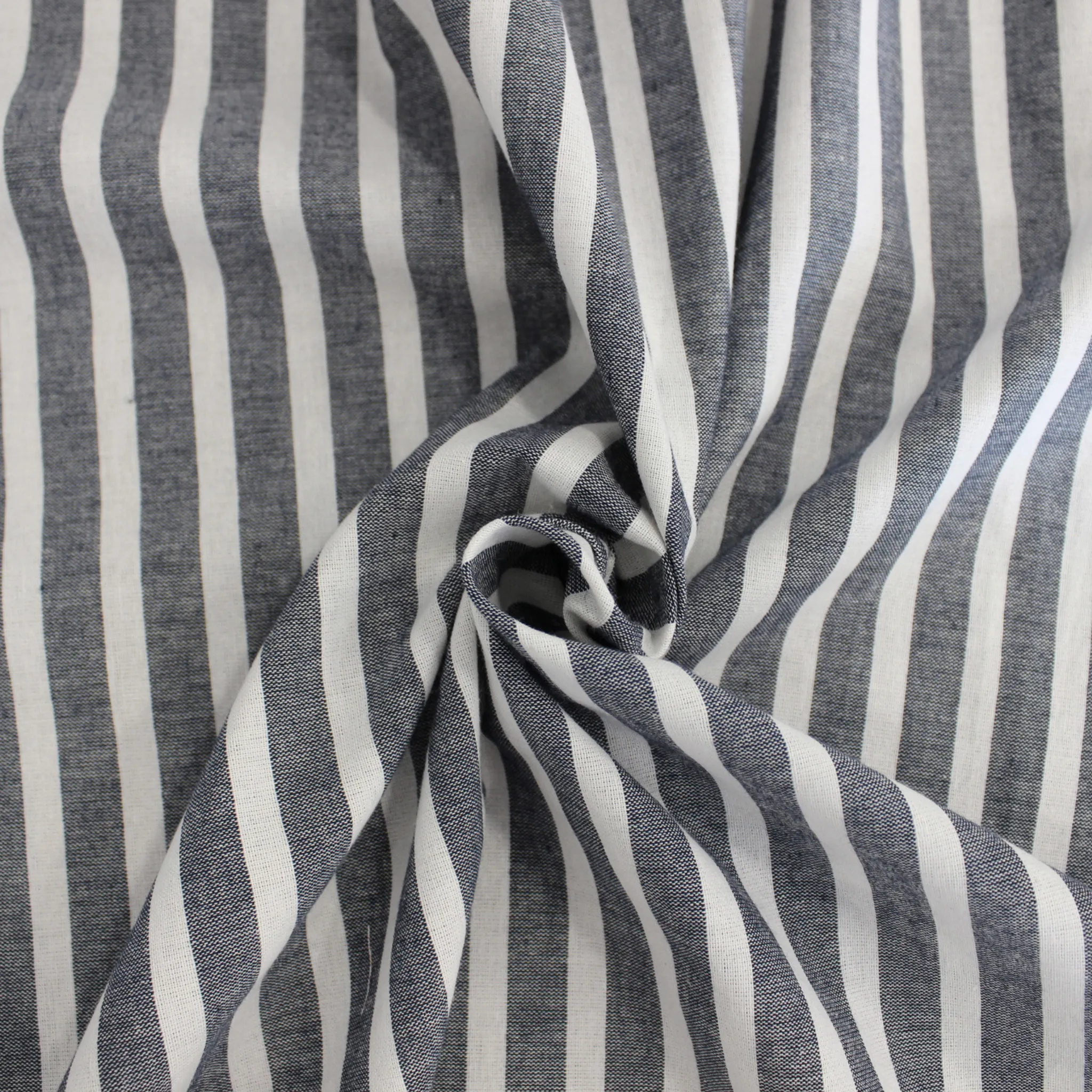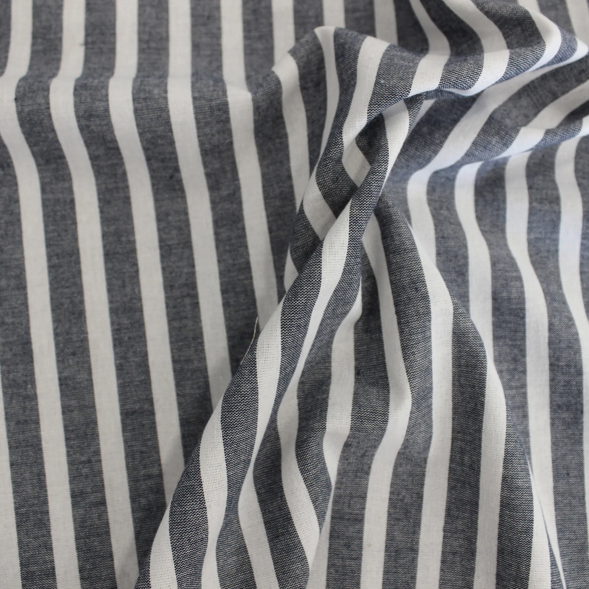 Leggero tessuto MADE IN ITALY in cotone su fondo bianco con righe di 1 cm di colore blu jeans . Ideale per realizzare capi d'abbigliamento estivi o accessori e progetti fai da te uomo donna e bambini come top, camicie,gonne o antaloni . Mano morbida e liscia, fresco e pratico, non trasparente ma molto leggero , non elastico .