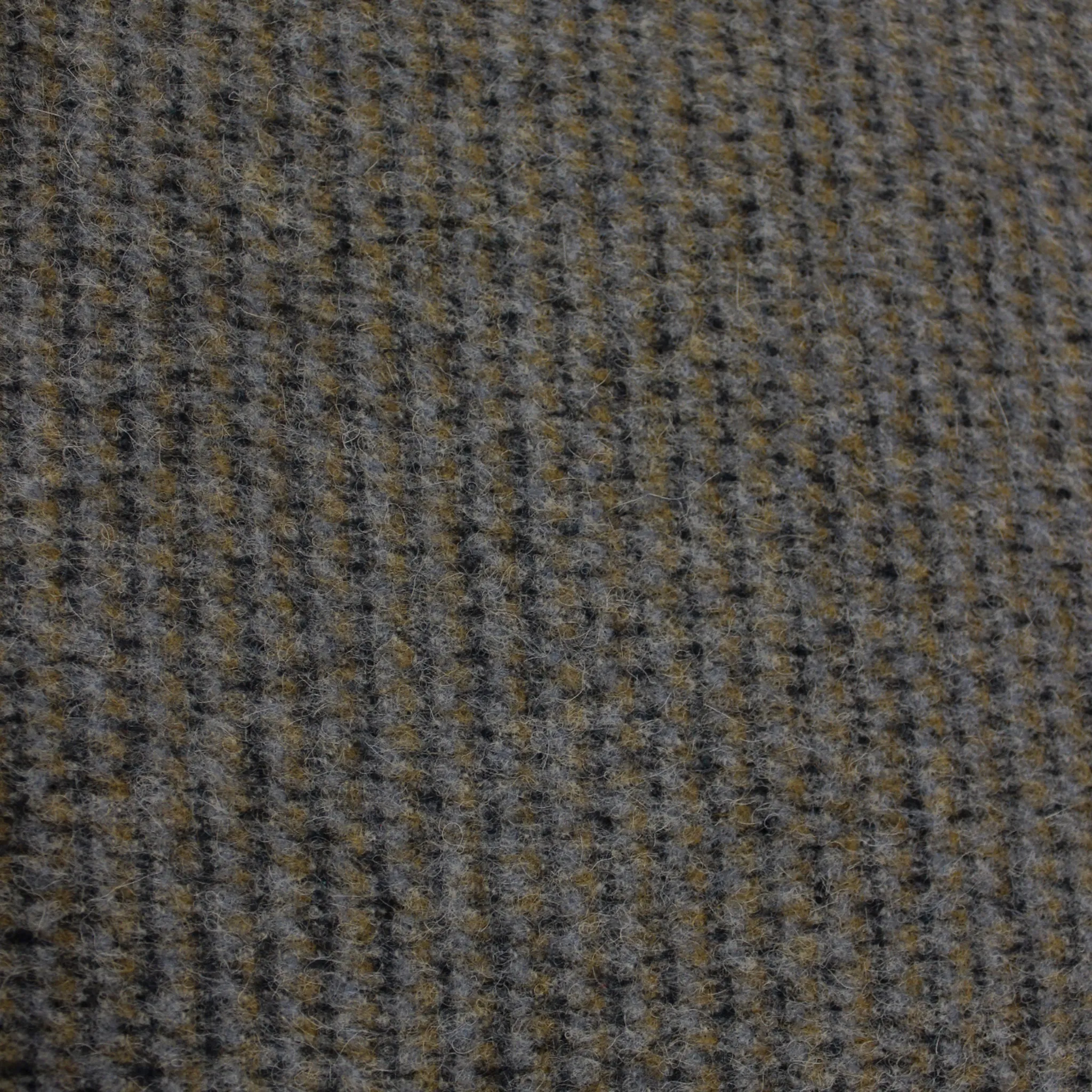 Particolare tessuto in misto lana con delicati puntini color grigio e blu .Risulta colorato ,dai toni caldi ; è versatile e caldo.